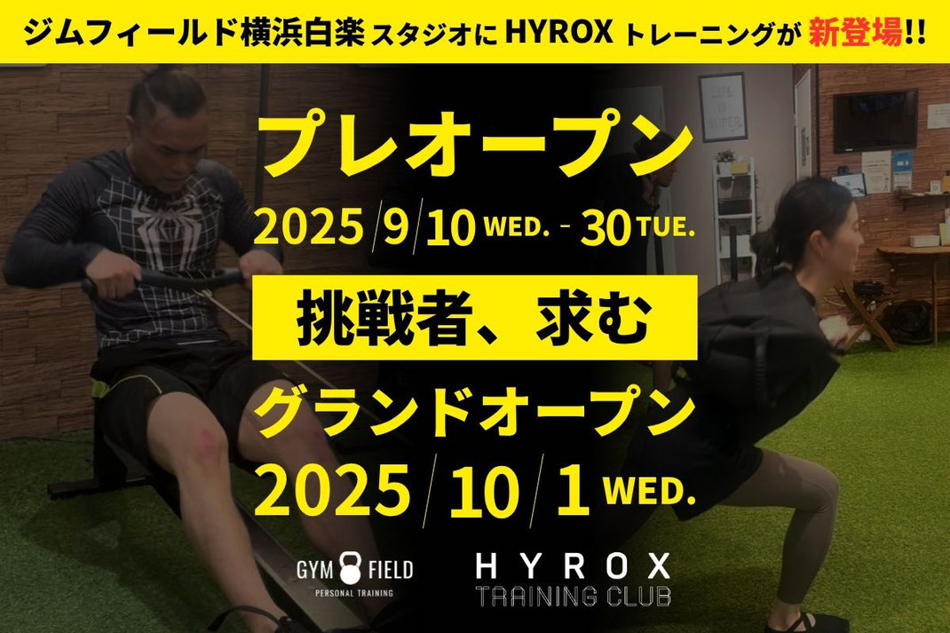 ジムフィールド横浜白楽店は、2025年10月1日のグランドオープンに先駆けて、9月10日(水)から9月30日(火) の期間限定でプレオープンキャンペーンを実施いたします。